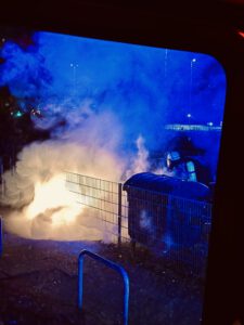 Es brannten zwei Müllcontainer. Mittels C-Rohr konnte der Brand schnell von uns gelöscht werden.