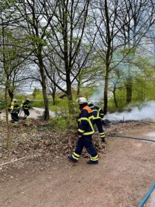 Auf einer Fläche von etwa 15 Quadratmetern brannte Laub und Gebüsch. Der Brand wurde von uns Mittels Schnellangriff abgelöscht.
